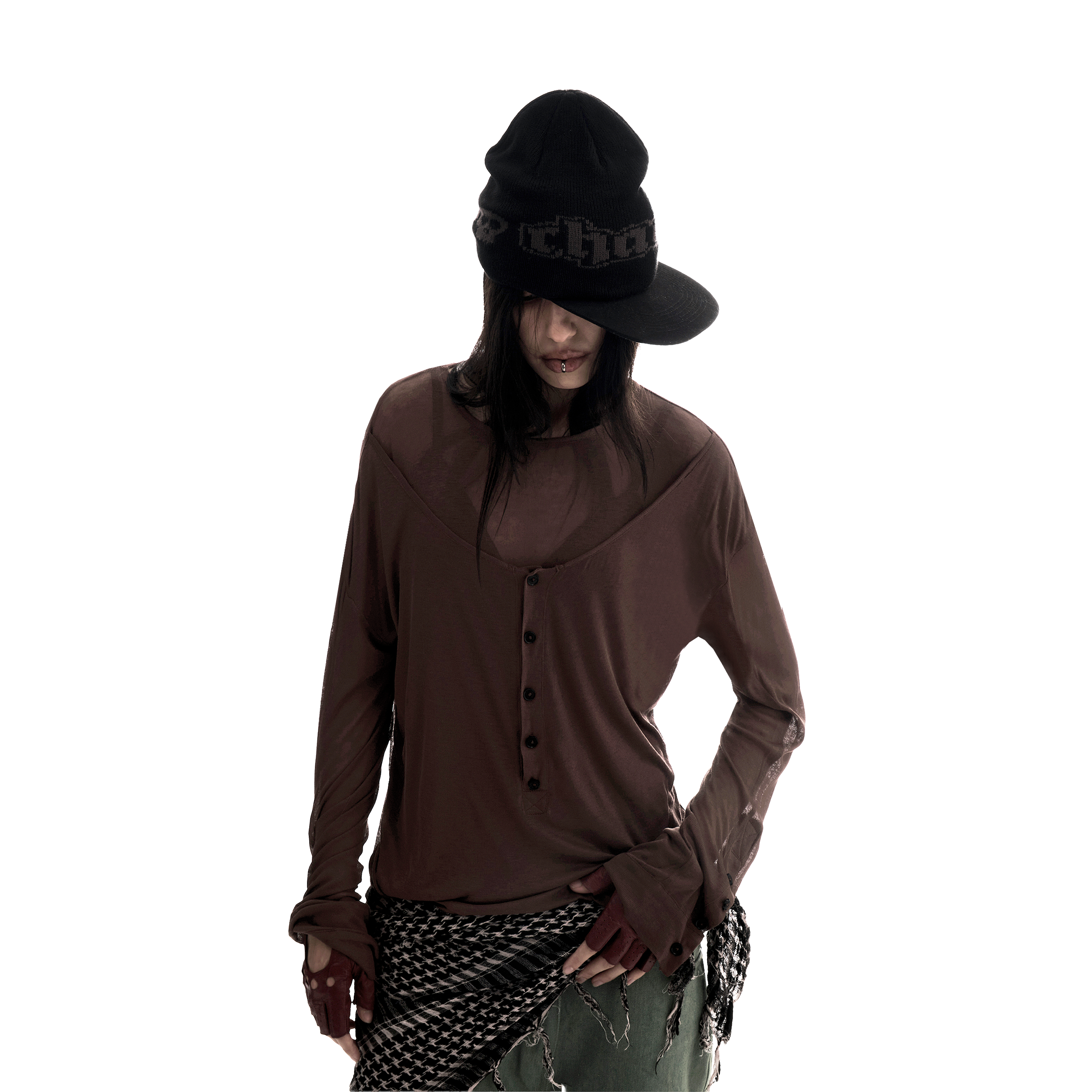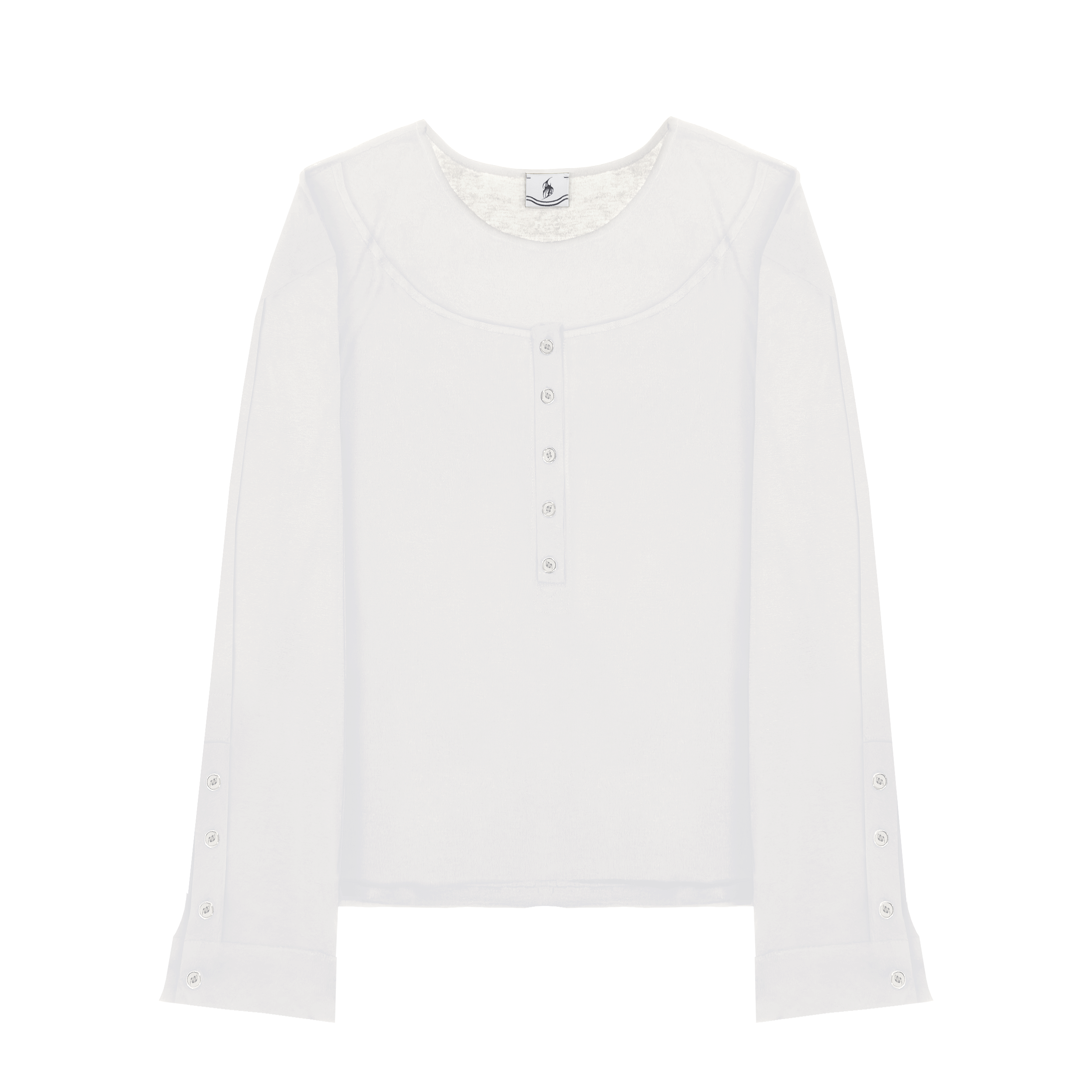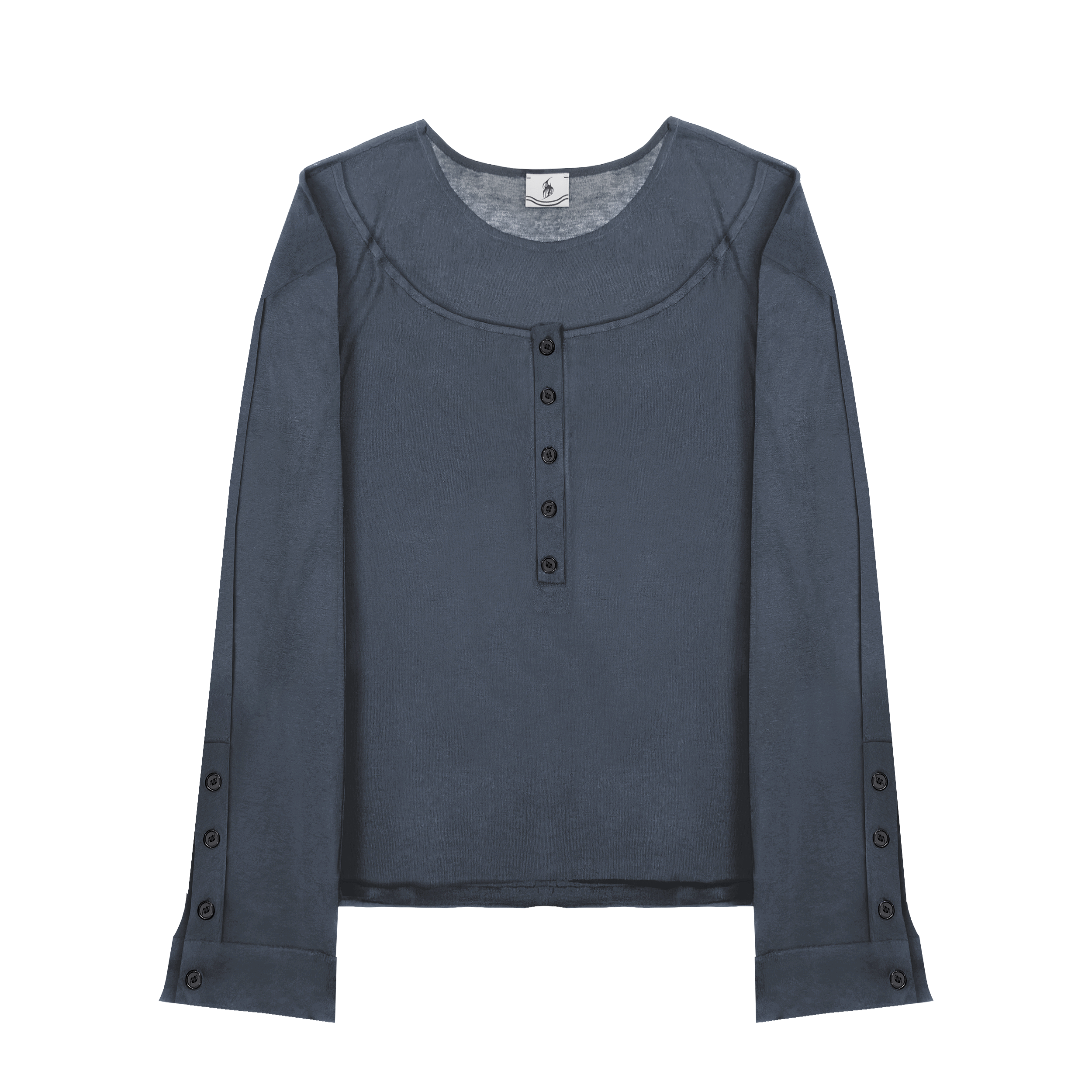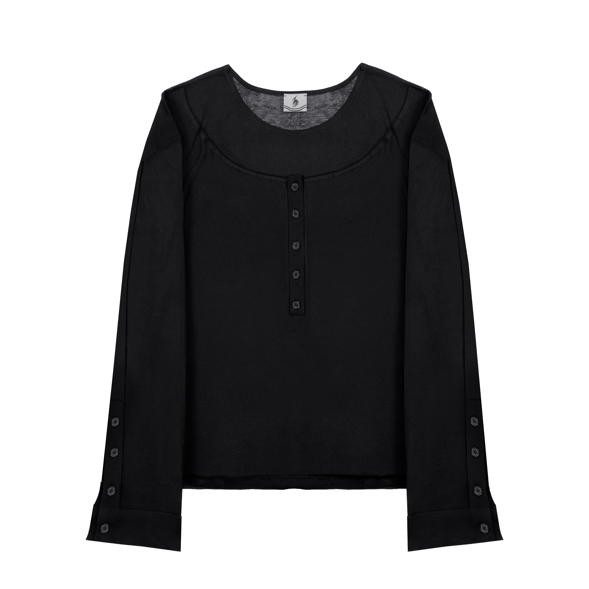 Двухслойный топ с брендированными пуговицами изготовлен из итальянского полупрозрачного трикотажа (140 г/м²), с использованием собственных лекал, подходящие одинаково для мужчин и женщин.