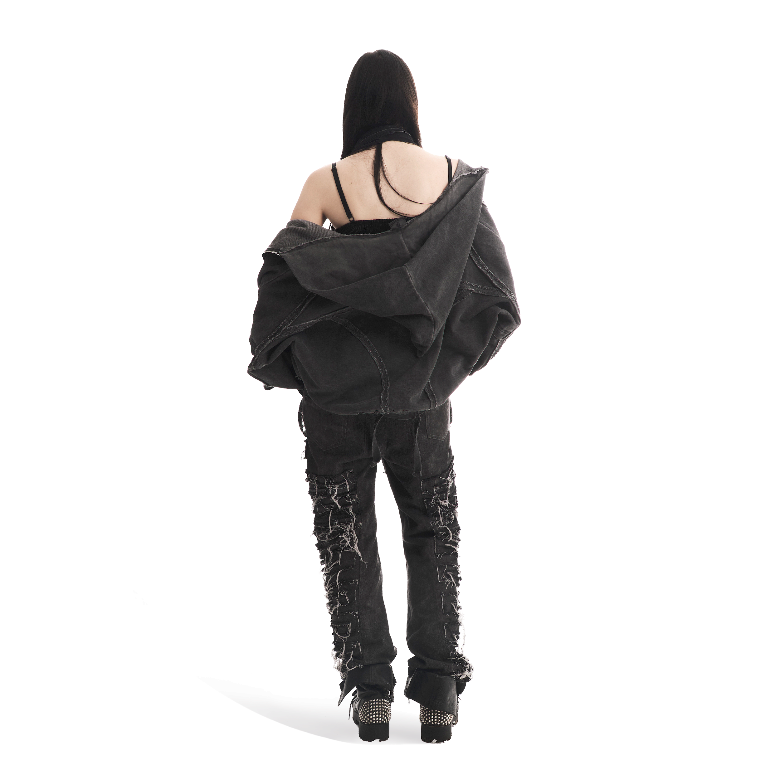 Основной акцент выражен в нашитых полосах из такого же материала, как само изделие. Они создают специальный узор, добавляющий чётко выдержанный стиль, который прослеживается во всей линейке b2. Добавлены старые расцветки из b1 – черная вещь прошла обработку «варки» и состаривания одежды, а белой придали эффект замарывания для благородного винтажного вида.