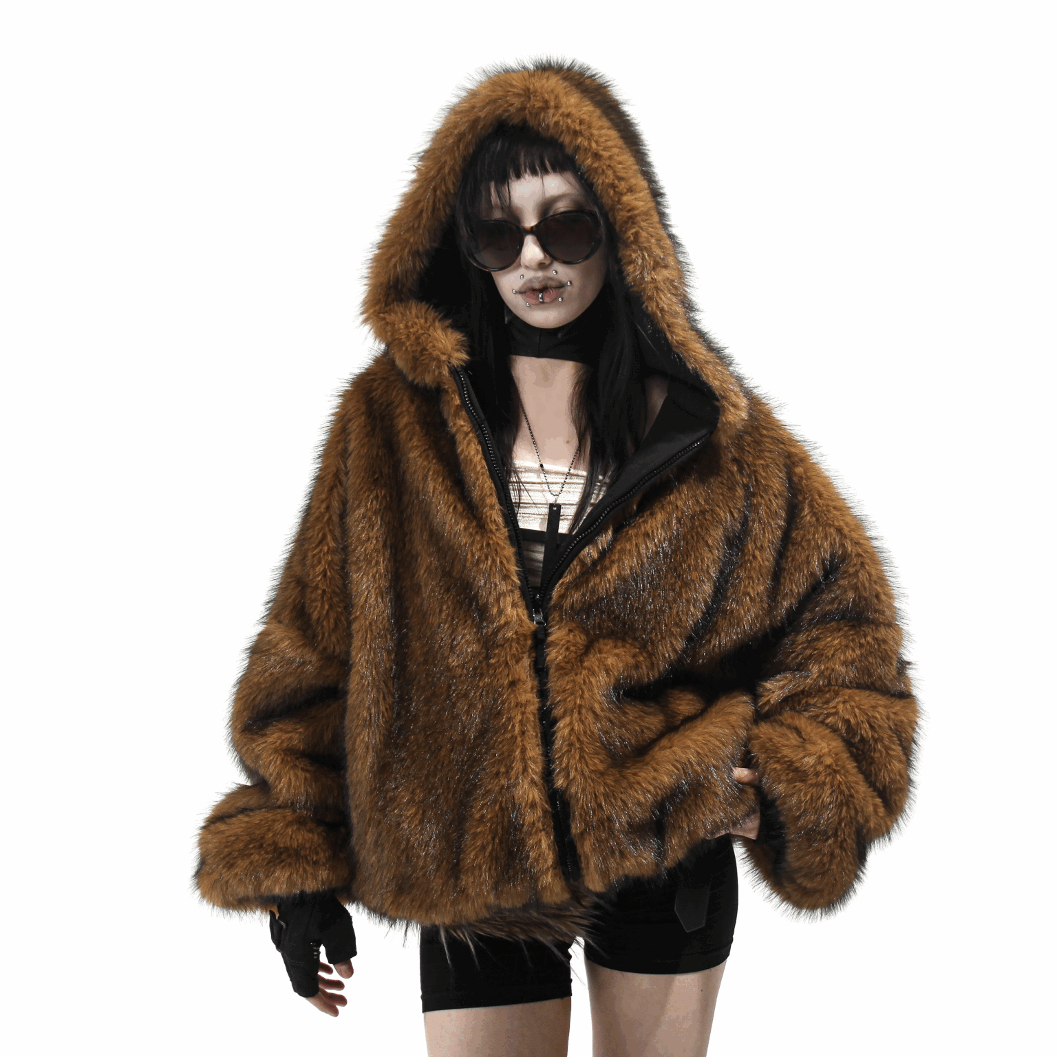 Brown Reversible Fur Bomber
