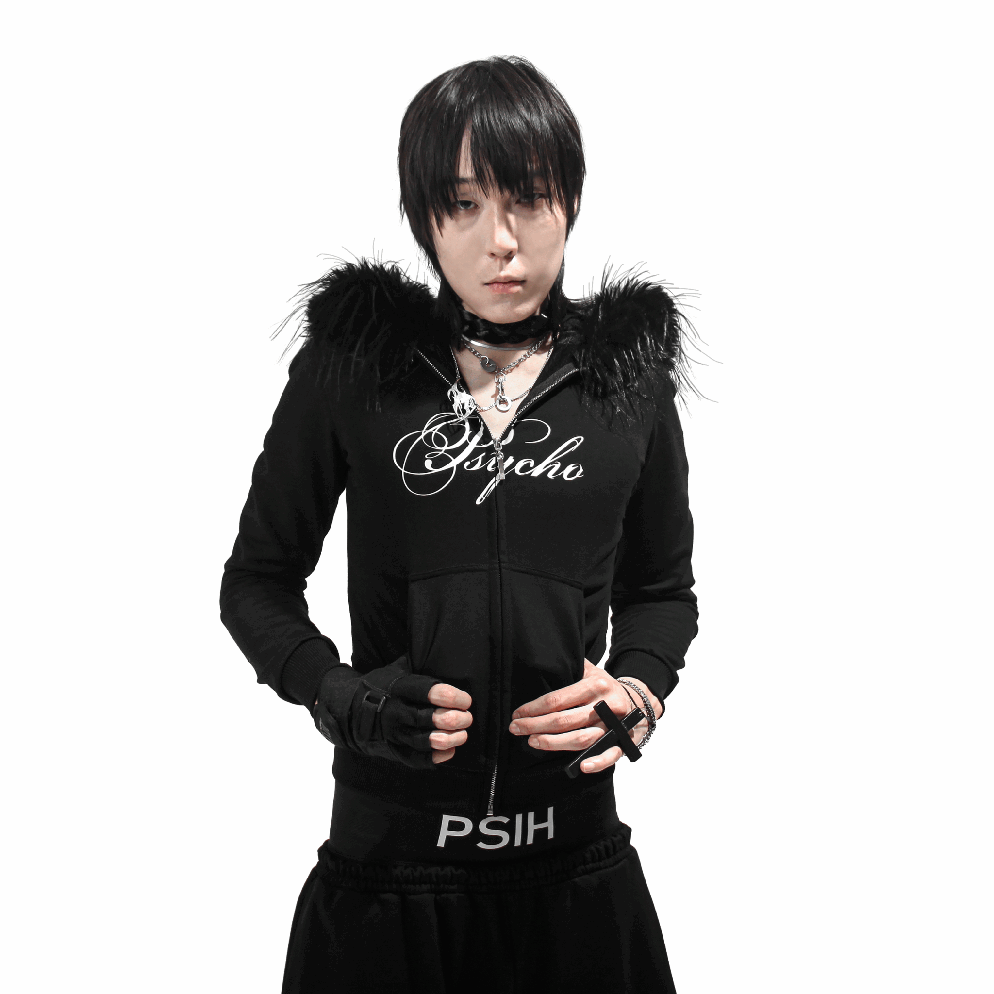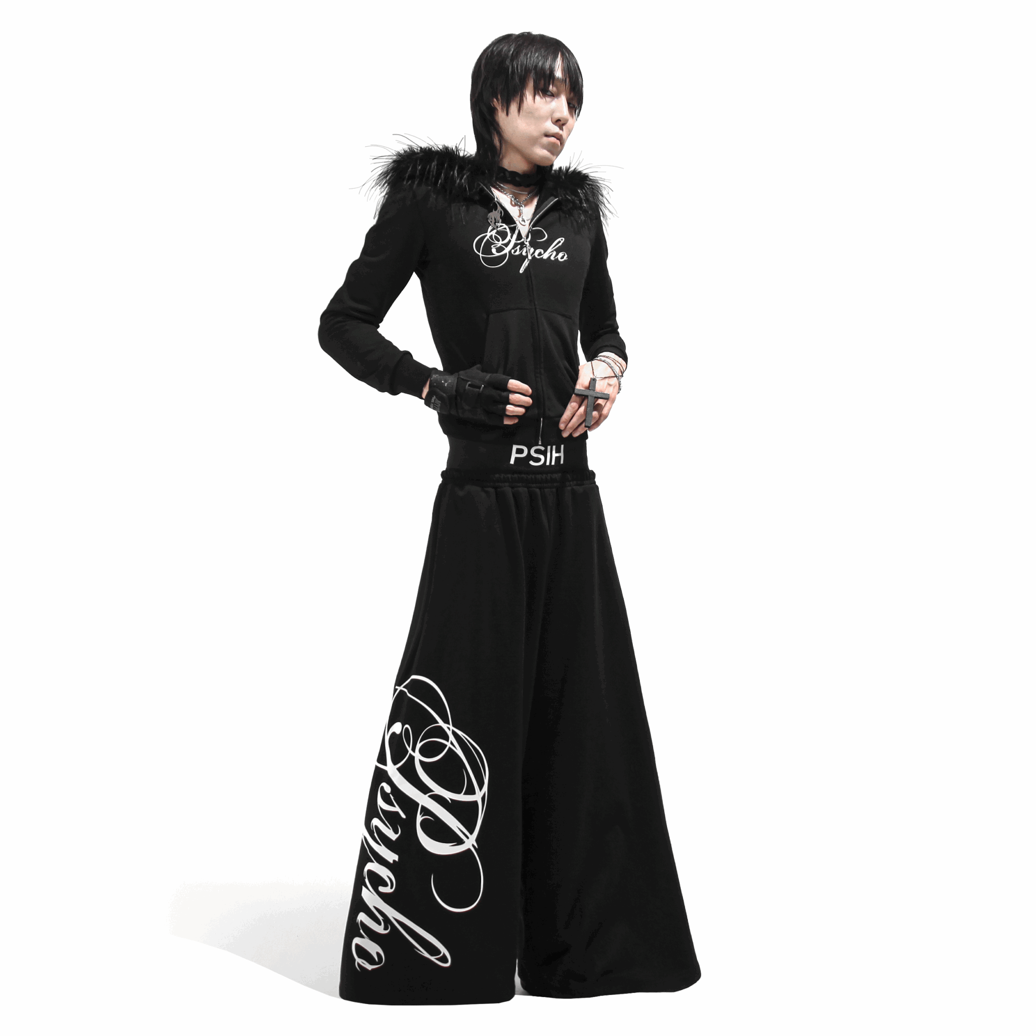 По бокам — скрытые карманы, крупная фирменная печать “Psycho” задаёт акцент в образе.